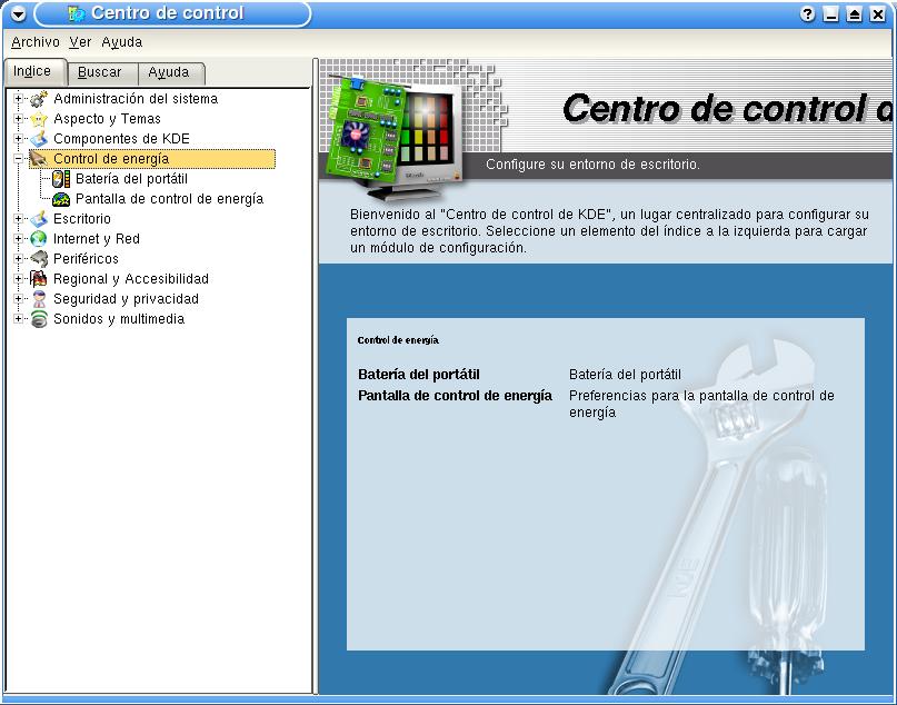 Este el principal programa de configuración dentro del escritorio KDE. Tiene multitud de módulos que reflejan casi todos los aspectos posibles de nuestro equipo y sus dispositivos. A continuación detallaremos cada uno de los módulos que componen esta herramienta: