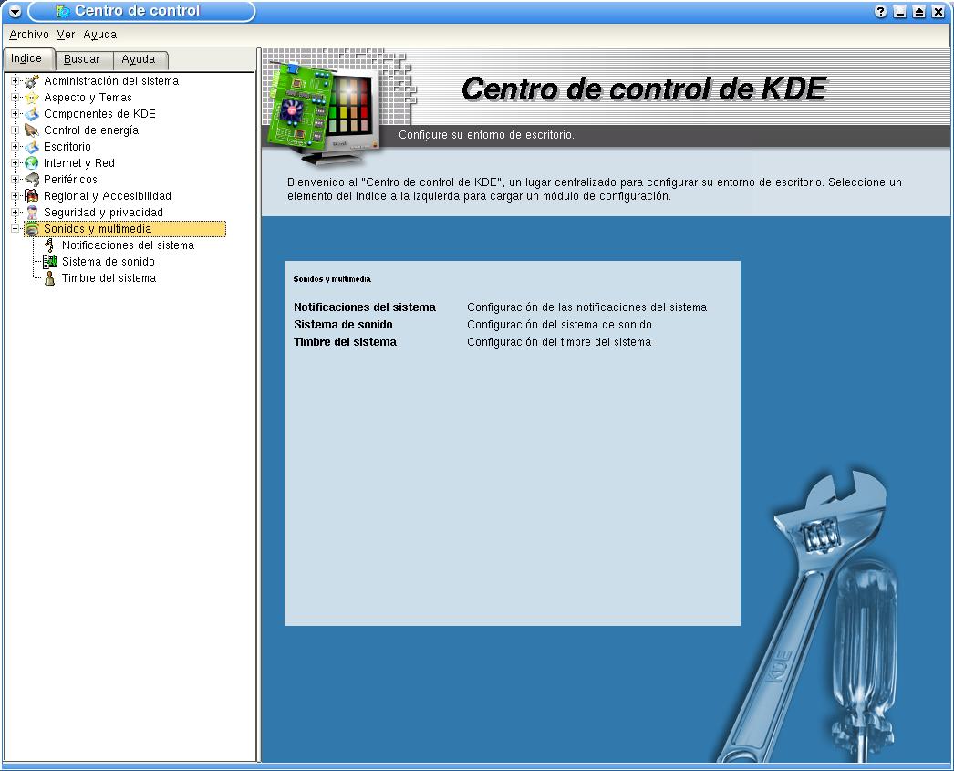 Sonidos y multimedia: configura el servidor de sonido ante los eventos del escritorio y las aplicaciones de KDE.