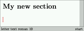 Si nos fijamos el cursor ha cambiado a una letra tamaño 14 y negrita. En la barra de estado, a la derecha, podemos ver que estamos escribiendo una sección.