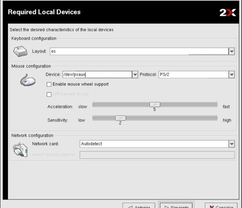 En la siguiente pantalla seleccionaremos nuestro ratón, el idioma del teclado y aconsejo dejar la tarjeta de red en “autodetec”.