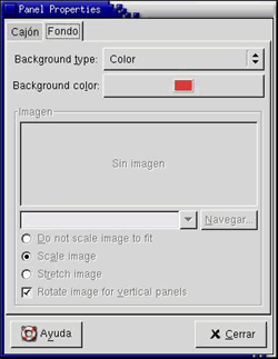 En la solapa "Fondo", elegiremos el color del fondo del panel, podremos utilizar una imagen como tal y definir sus propiedades (ajustar, no ajustar, rotar al cambiar la orientación, etc.)