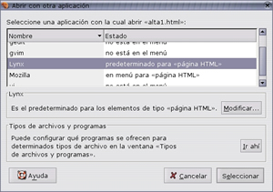 2. Ahora nos desplazamos por la ventana de las aplicaciones en la que podemos ver que el navegador predeterminado es Lynx. Seleccionamos Mozilla y pulsamos en Modificar. |
