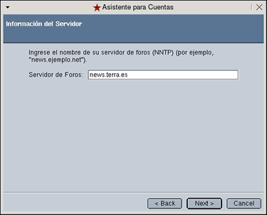 El primer paso para utilizar el Mozilla Mail como lector de news es configurarlo con los datos de nuestro proveedor. El único que necesitamos, puedes verlo si repasas los datos de tu cuenta de correo en Terra es que el servidor de news es: news.terra.es.