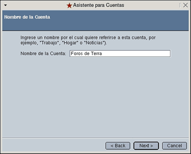 3. Introducimos ahora el nombre del Servidor de Foros: news.terra.es, lo obtenemos de nuestros datos de configuración en Terra. | 4. Ahora damos un nombre a la cuenta que acabamos de crear (puede ser cualquiera). Recuerda que podemos tener más, tanto de correo como de noticias. | |