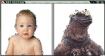 Una vez cargadas las 2 imágenes y con ayuda de las herramientas Set Vector/Line, Edit Vector y Delete Vector se podrán trazar los vectores que determinarán los contornos que se tendrán en cuenta durante el morphing de cada imagen. Cuanto mayor es la cantidad de vectores mejor será la calidad del mismo.
