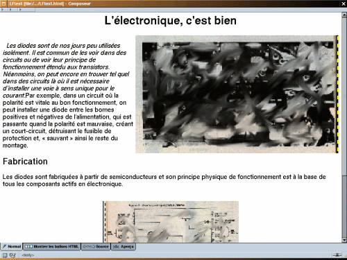 Kopieren/Einfügen in den HTML-Editor (für mich Mozilla Composer) und ich konnte mit der HTML-Erstellung beginnen (achten Sie darauf, nur relative Links zu benutzen, wenn Sie einige Bilder hinzufügen).