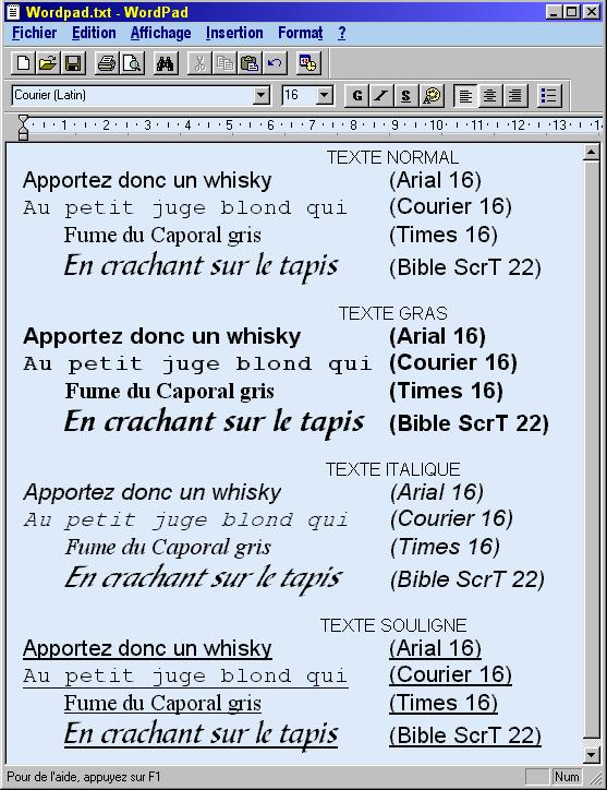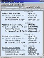 -WordPerfect liesst RTF: Arial wird durch Univers ersetzt, Courier durch Courier 10cp (fixe Grösse), Times und BibleScript werden durch CG Times ersetzt. Alle Attribute (ausser die Courier-Grösse) und Formatierungen werden erhalten. Das Doc-Format wird besser behandelt als das RTF.
