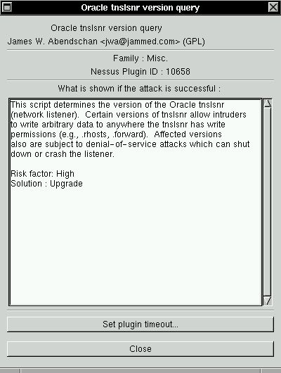 Accordingly, if you want to contribute to the nessus project writing plugins, this is where you'll find the right information. At the time of this writing, there are 756 plugins in nessus' database !