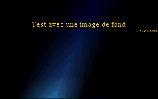 %page %nodefault %size 7, font "thick", fore "gold", bimage "bg-black-brilliant.jpg" 1024x768 %center, size 4 %size 7 Test avec une image de fond %cont, size 7 %right %size 4 Linux Focus.