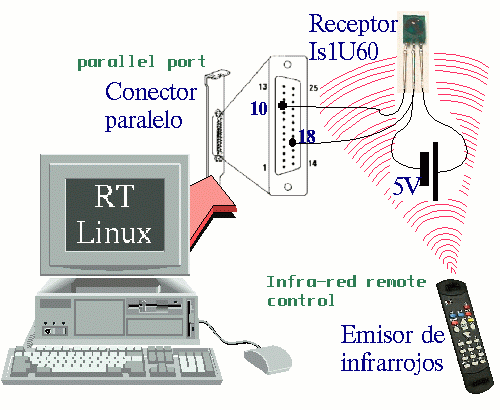 Using a simple electric circuit, we can make RT-Linux receive orders from an infra-red remote control.