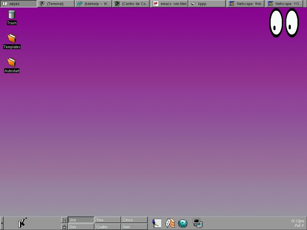 Als laatste zou ik eraan toe willen voegen dat deze omgeving makkelijk is in het dagelijks gebruik. We kunnen de bovenkant van het scherm instellen met vele knoppen voor de meest gebruikte toepassingen, het aantal bureaubladen kan worden ingesteld en men kan eenvoudig hiertussen manoeuvreren; als het toetsenbord je voorkeur geniet kun je <Ctrl>/<Alt> + <Tab> gebruiken om van bureaublad te veranderen. Zelfs een enkele terminal (kvt) kan worden ingesteld met aparte kleuren en lettertypen en als we deze aan een bureaublad willen hangen hoeven we alleen maar het icoon in de linkerbovenhoek van het scherm in te drukken.