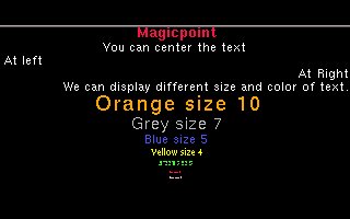 Het is afkomstig uit de BSD wereld en wordt ontwikkeld door een Japans team. Een MagicPoint presentatie wordt gemaakt met behulp van een tekst bestand. De syntax hiervan zullen we later bekijken.