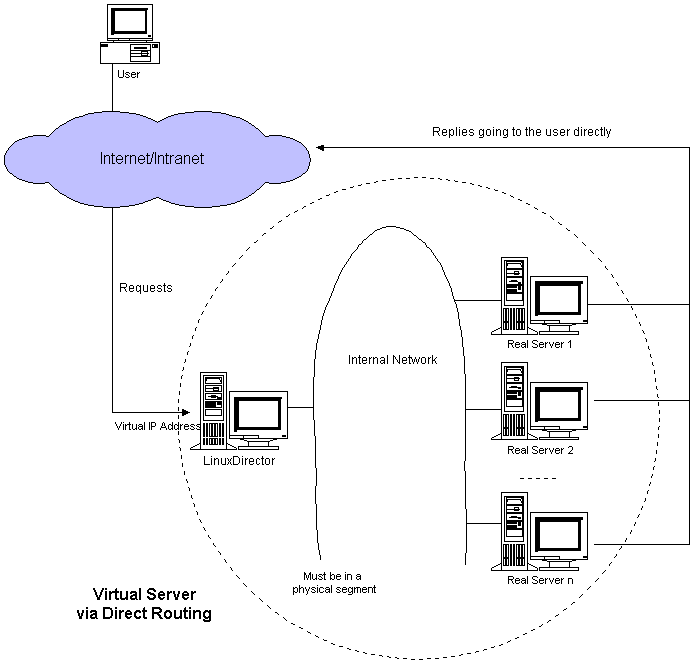 Esta solución consiste en un balanceador de carga, también conocido como director, que será la máquina que será accesible directamente para los clientes y luego tendremos los servidores que serán aquellos que recibiran las peticiones de los clientes, vía el balanceador de carga, y responderán a las peticiones.