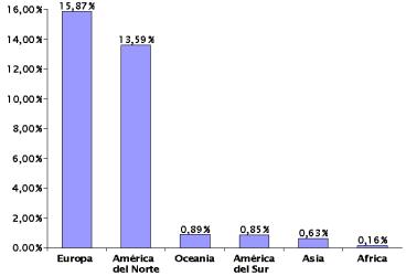 Si sumamos la contribución por continentes, vemos que Europa se vuelve a situar por delante de Norteamérica.