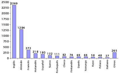 En la siguiente gráfica cabe resaltar que el dominio del inglés está muy arraigado, más que nada por que es casi una necesidad. El 97% de los encuestados declaran tener conocimiento de dicha lengua, situándose las demás a gran distancia. La comunidad de habla hispana es la cuarta más numerosa después de la inglesa, la alemana y la francesa.