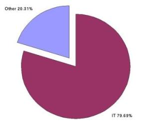 Al haber dividido las profesiones en dos tipos de áreas diferentes, podemos ver el grado de participación de sectores ajenos al de las tecnologías de la información. Las estadísticas nos cuentan que uno de cada cinco no tiene una profesión relacionada con las tecnologías de la información.