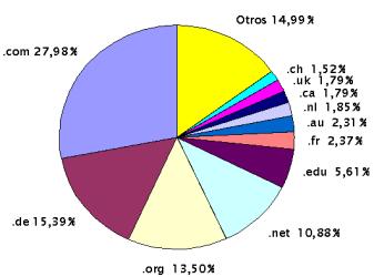 Un aspecto que podemos evaluar gracias a la correlación de diferentes preguntas es ver la distribución de los dominios en cuanto a la nacionalidad de sus propietarios. Así, se puede ver que el dominio .com es de ciudadanos estadounidenses en igual número que de ciudadanos del resto de países del mundo. En el estudio original, se ha realizado esta correlación con todos los dominios genéricos y algunos específicos de país. Los datos de los dominios genéricos se pueden utilizar en SourceWell y Codd para asignar de manera estadística nacionalidades a estos dominios, mientras que los específicos de país permiten corroborar que la suposición de corresponder el dominio del país con una persona de esa nacionalidad es bastante exacta (superior al 95%).
