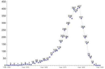 El año de nacimiento que aparece con mayor frecuencia es el correspondiente a los desarrolladores nacidos en 1979. La media, sin embargo, se sitúa en 1974.1, por lo que el desarrollador medio a día de hoy tiene 27 años de edad y va camino de los 28. Puede verse cómo uno de los clichés más arraigados, el que dice que el software libre lo realizan niñatos, no concuerda mucho con la realidad. Aún así, hay más desarrolladores nacidos en la déda de los 80 (un 20%) que en la de los 60 (un 16%).
