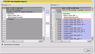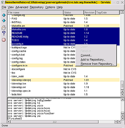 cervisia: Interfaz gráfica KDE para CVS, disponible en http://cervisia.sourceforge.net/ . El pantallazo de su ventana principal,