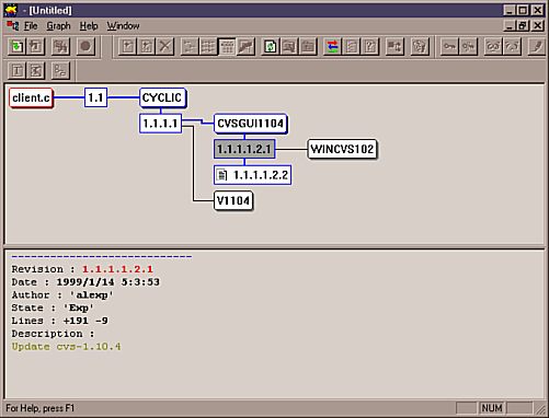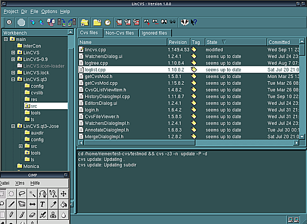 lincvs: Interfaz gráfica para CVS que usa la biblioteca grafica Qt, disponible en http://www.lincvs.org/. Su pantalla principal: