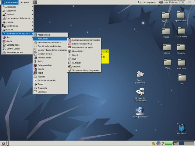 Quizas os pregunteis porque existen dos sitios distintos donde están las aplicaciones del Centro de Control y porque el echo de duplicarlos. ¡No están duplicados! Son el mismo grupo de aplicaciones vistas desde dos puntos distintos, GNOME trabaja con los directorios de una forma especial, posibilitando las vistas de esa manera. Las aplicaciones en el menú no son más que ficheros en un directorio, y las secciones solo meras carpetas.