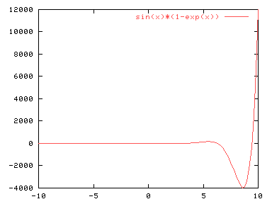Por ejemplo, para representar sin(x)*(1-exp(x)):