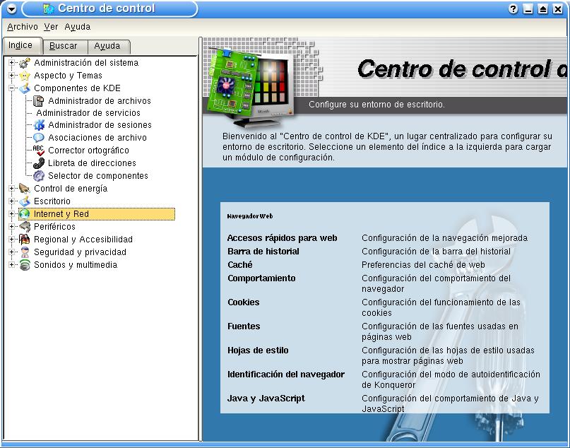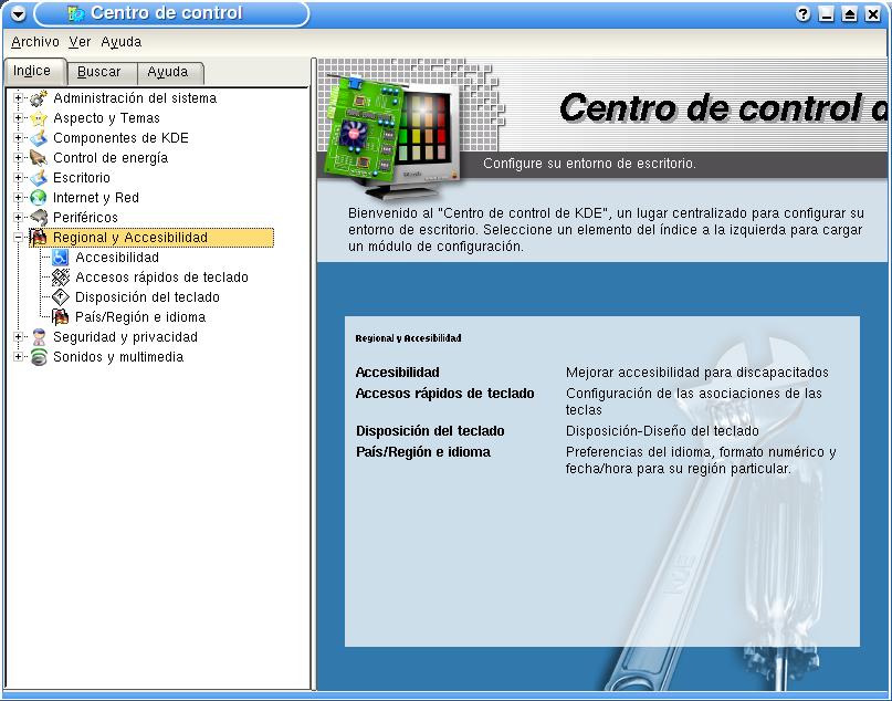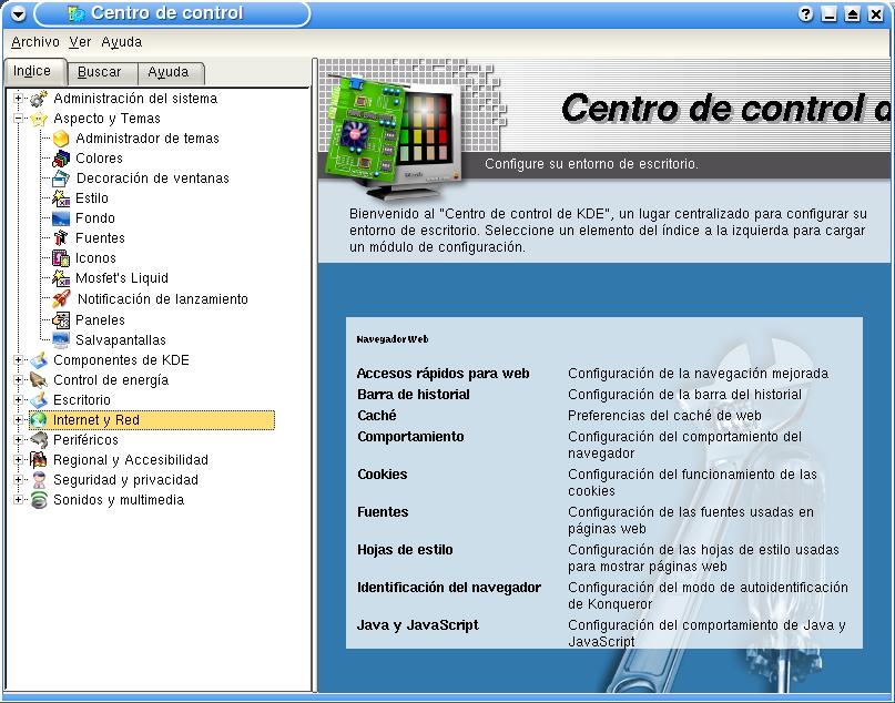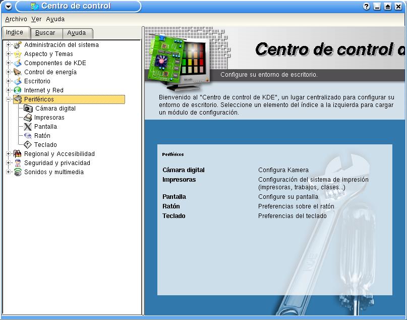 Este el principal programa de configuración dentro del escritorio KDE. Tiene multitud de módulos que reflejan casi todos los aspectos posibles de nuestro equipo y sus dispositivos. A continuación detallaremos cada uno de los módulos que componen esta herramienta: