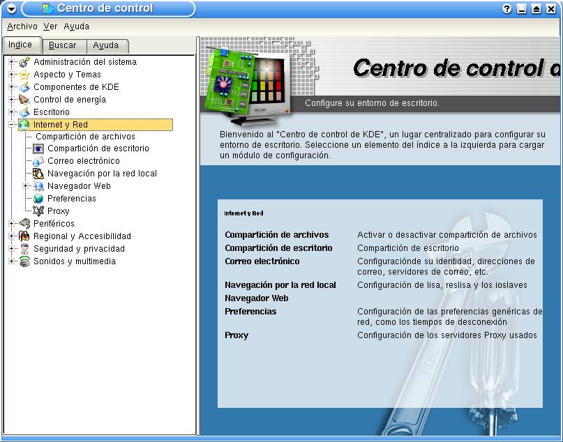 Internet y Red: los módulos que integran esta categoría configuran: la compartición de archivos, la navegación por los archivos compartidos de windows, el navegador web, etc.