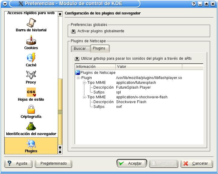 Soporte de plugins de Netscape. Para poder visualizar todos los contenidos especiales de la web.