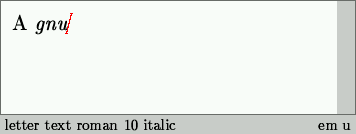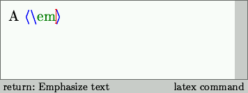 La primera imagen indica el estado del editora antes de poner un texto en cursiva. La barra de estado indica que \em ha sido reconocido como un comando LaTeX y que podemos comenzar el texto en cursiva presionando ENTER .