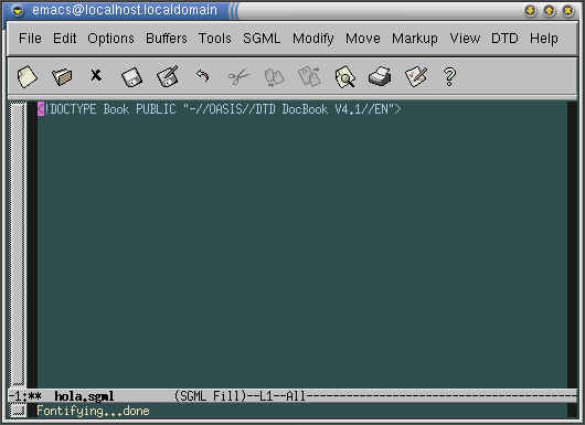 Una vez hecho esto obtendrá una pantalla como la siguiente, observe que aparecen algunos menus como SGML, DTD, Markup y otros. En caso de no ser así, revise la instalación de su sistema.