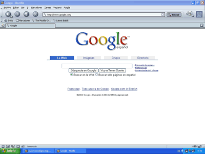 | Página de Google que es, sin duda, el buscador más utilizado por la comunidad de Internet |