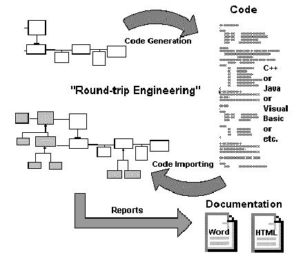 El diagrama de clase se puede desarrollar en una 'iterative fashion', a través de un ciclo repetido de análisis, diseño e implementación, y después vuelta al análisis, para empezar el ciclo de nuevo. Este proceso se suele llamar 'round-trip engineering'. El modelado de herramientas como System Architect 2001 puede facilitar este proceso permitiéndote implementar el diseño en un lenguaje como C++ o Java, y después traer de vuelta al código a al diagrama de clase, automáticamente actualizando la información contenida en el diagrama y en el 'underlying repository'.