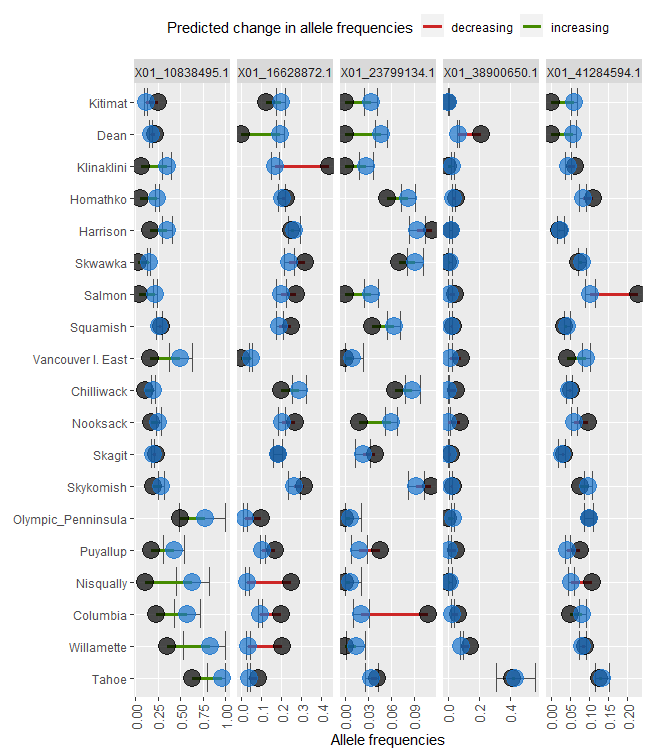 geom_segment(aes(x=Pop, y=Allele.freq, xend=Pop, yend=Freq.e2, colour=increasing),