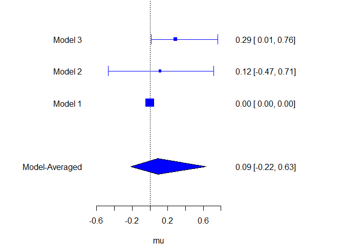 The package also simplifies implementation of Bayesian model-averaging (see e.g., RoBMA package).