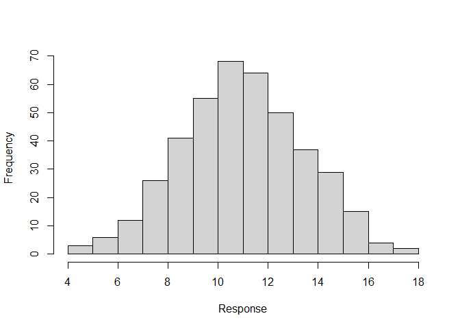 The proportions in design_a were replicated over two treatment levels, giving a total of 412 rows in the simulated dataset. The sim3 data can be loaded and viewed in the usual way.