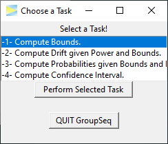 GroupSeq computes probabilities related to group sequential designs for normally distributed test statistics. It enables to derive critical boundaries, power, drift, and confidence intervals of such designs, mostly using the alpha spending approach of DeMets and Lan (1994).