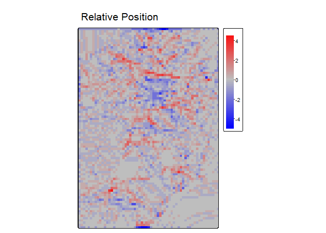 <- RelPos(r, w=matrix(data = c(1,NA,1), nrow = 3, ncol=3), shape = "custom", fun = "median", na.rm = TRUE) rp