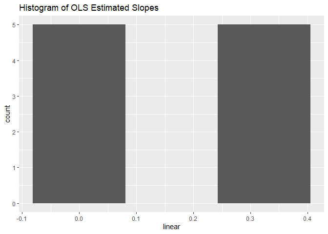These histograms reveal the distribution of intercepts and slopes across subjects. They are useful for identifying skewness or other interesting distributional properties in the data.