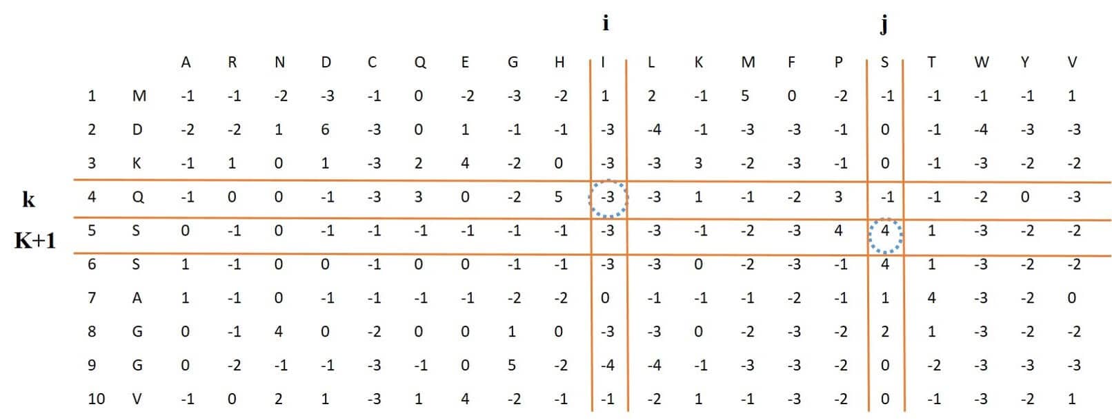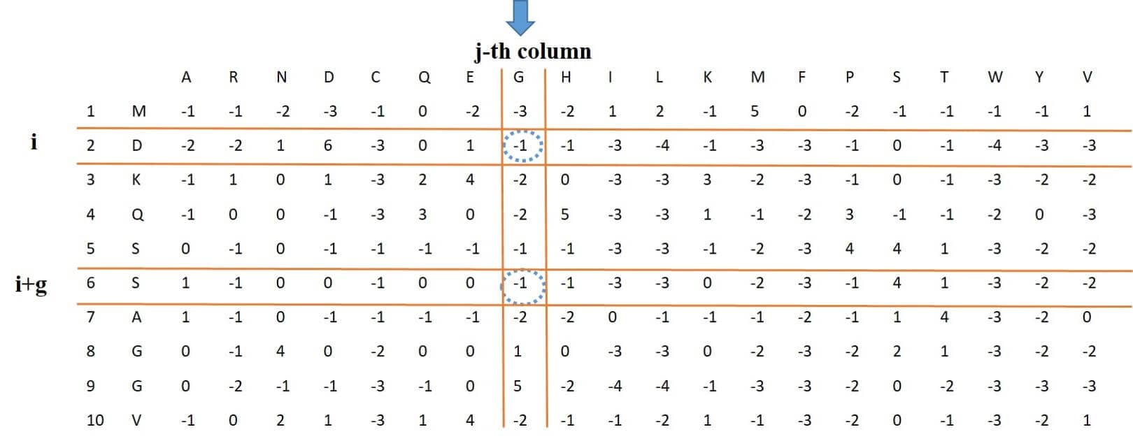 In this group of features, in order to use uniform dimensions to show proteins of different lengths, in the first step, the average evolutionary score between adjacent residues is calculated using the following equations: