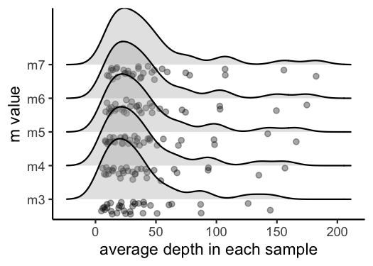 #> [1] "Visualize how different values of m affect average depth in each sample"