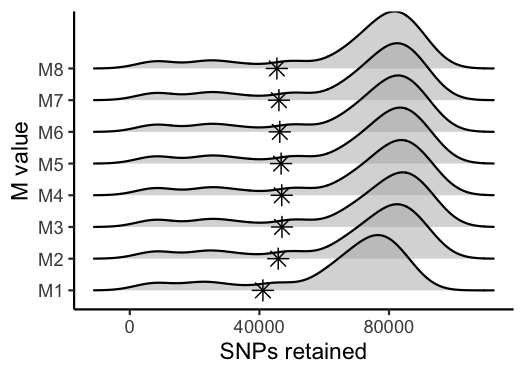 gl[[#> Visualize how different values of M affect number of SNPs retained.