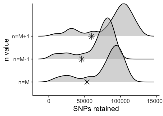 gl[[#> Visualize how different values of n affect number of SNPs retained.
