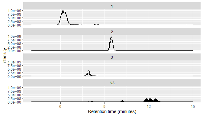 labs(x="Retention time (min)", y="Intensity", color="File name: ") +