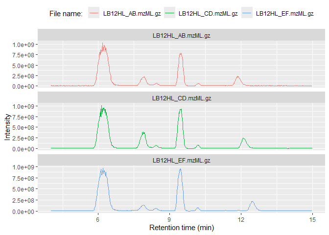 <- grabMSdata(files = msdata_files[2:4], grab_what = c("BPC", "MS1")) msdata