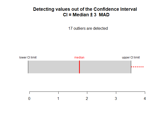 The Routliers package allows you to easily count, detect and plot outliers using robust methods. The most important functions in the package are outliers_mad and outliers_mcd, which allow to detect univariate and multivariate outliers, respectively. By default, the MAD function assume a normal distribution underlying the data and treat all value more than 3 MAD around the median as outliers. Moreover, the MCD function select by default h = n/2 observations on which the empirical mean and empirical covariance matrix are calculated (see Leys et al., 2018).