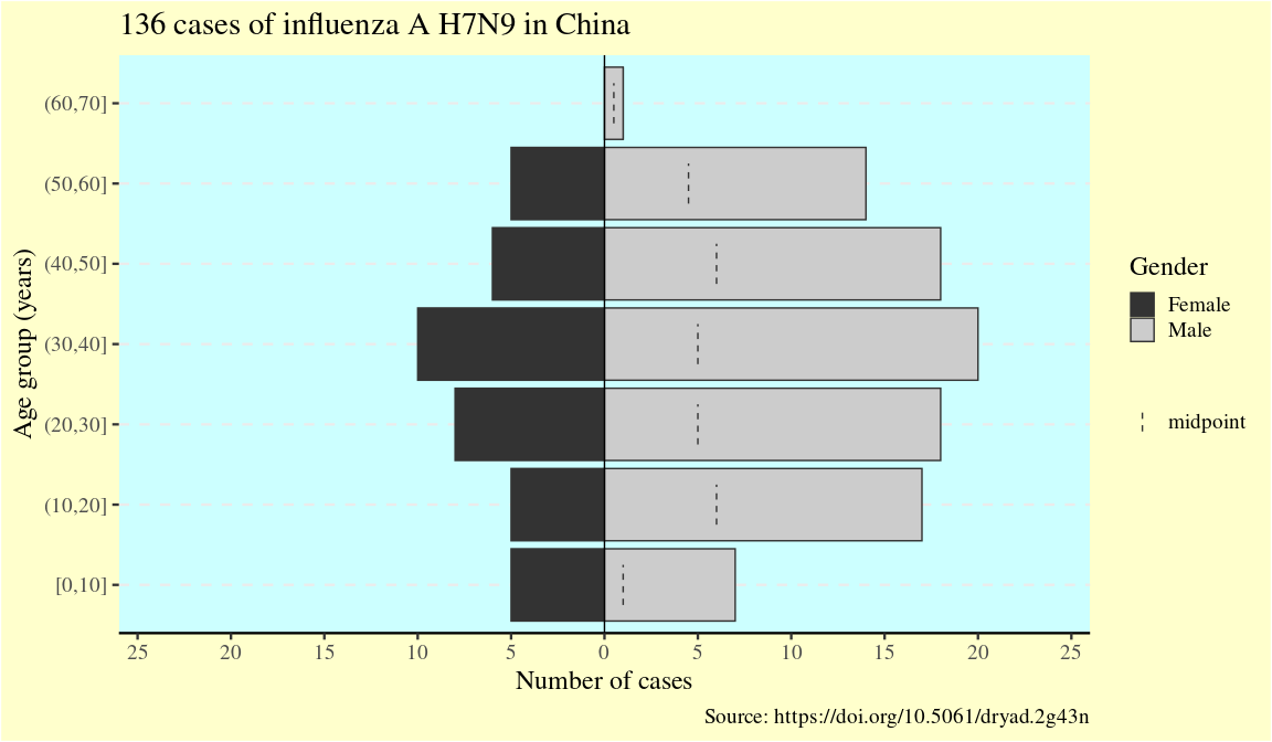 We can demonstrate plotting of un-aggregated data with the fluH7N9_china_2013 data set in the {outbreaks} package that records 136 cases of Influenza A H7N9 in China in 2013 (source: https://doi.org/10.5061/dryad.2g43n)