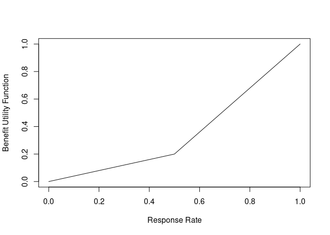 benefit_fun curve(benefit_fun, xlab = "Response Rate", ylab = "Benefit Utility Function")