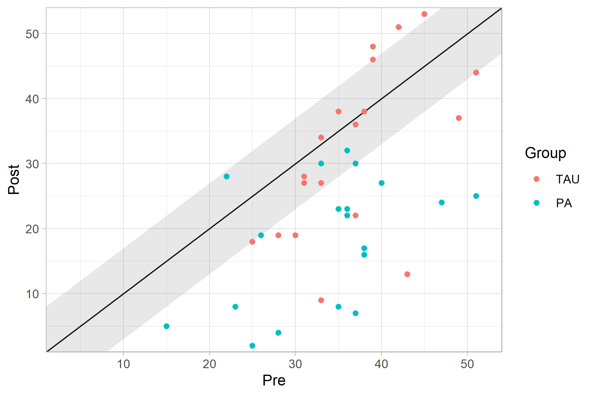 #> decrease in instrument scores (bdi) indicating a clinical significant