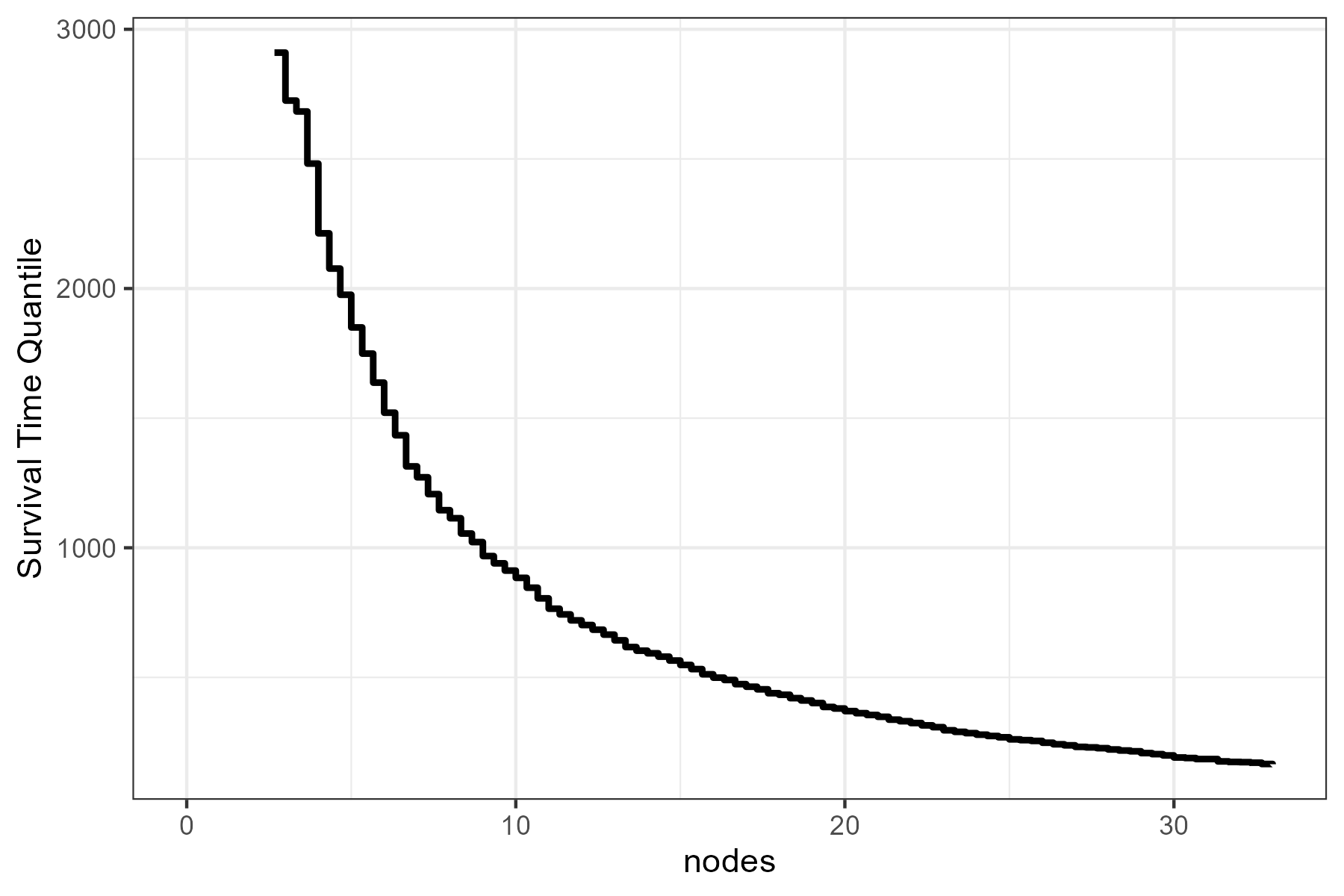 Or we can use a simple plot of the median survival time as a function